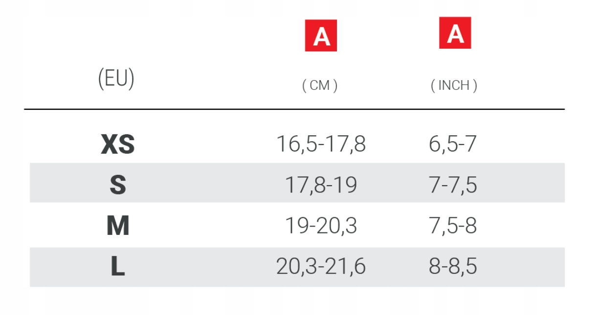 A: ОБХВАТ РУКИ. Виміряйте окружність вашої руки так, щоб злегка натягнута стрічка проходила над кісточками пальців у найширшому місці, опускаючи великий палець
