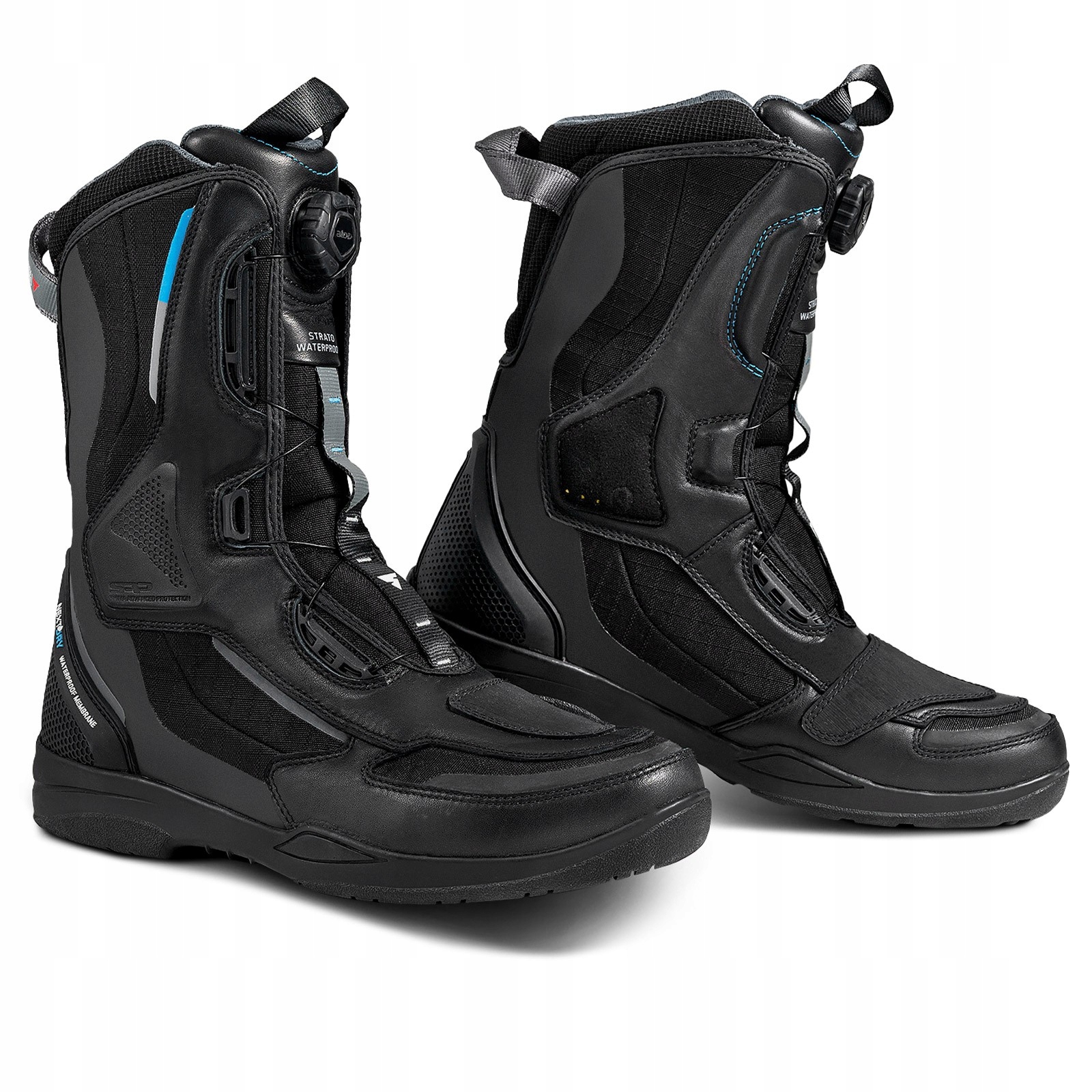 Перевірена модель добре вентильованого взуття Strato з новим сезоном набула нових параметрів. Він був оснащений новою зовнішньою тканиною з гідрофобними властивостями, і так було створено взуття Strato WP. Завдяки підкладці з мембраною NextDry вам не доведеться турбуватися, якщо піде дощ під час поїздки на мотоциклі.