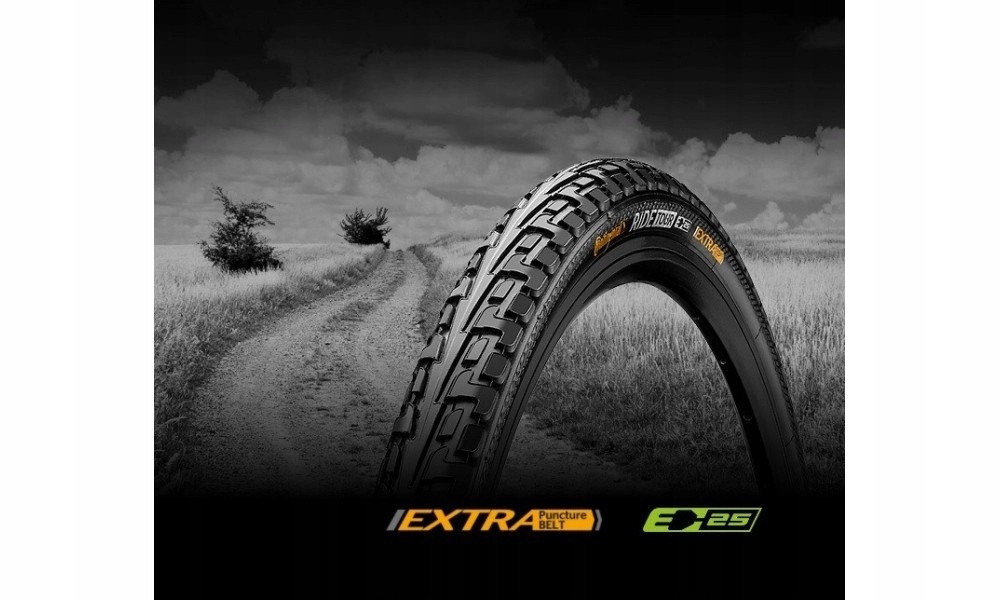 - Дуже універсальна шина, протектор виготовлений з матеріалу підвищеної стійкості до стирання, що забезпечує ефективну роботу в складних умовах. Великий пробіг – це сфера шин Continental Ride Tour, система Extra Puncture Belt забезпечить безпечне водіння по твердій поверхні.
