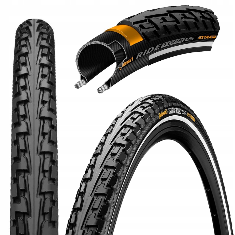 Continental Ride Tourце економічна шина для щоденної їзди. Він добре працює як на гравійних трасах, так і на асфальті. Протектор забезпечує хороші властивості кочення на будь-якій поверхні, а бічні блоки гарантують оптимальне зчеплення та стабільність у поворотах.