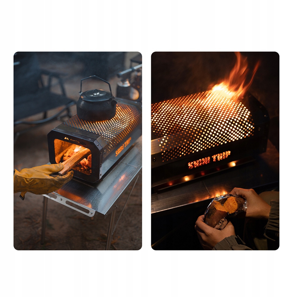 Функція: 1. Преміум -на конструкція з нержавіючої сталі: кемпінг виготовлений з суцільної рами з нержавіючої сталі 430, що забезпечує виняткову довговічність та стійкість до високих температур до 900 ° С. знімання 304 гриль з нержавіючої сталі дозволяє легко чистити, що робить його зручним вибором для киплячих любителів. Це не тільки підвищує загальну ефективність згоряння, але й додає витонченості у зовнішньому просторі.