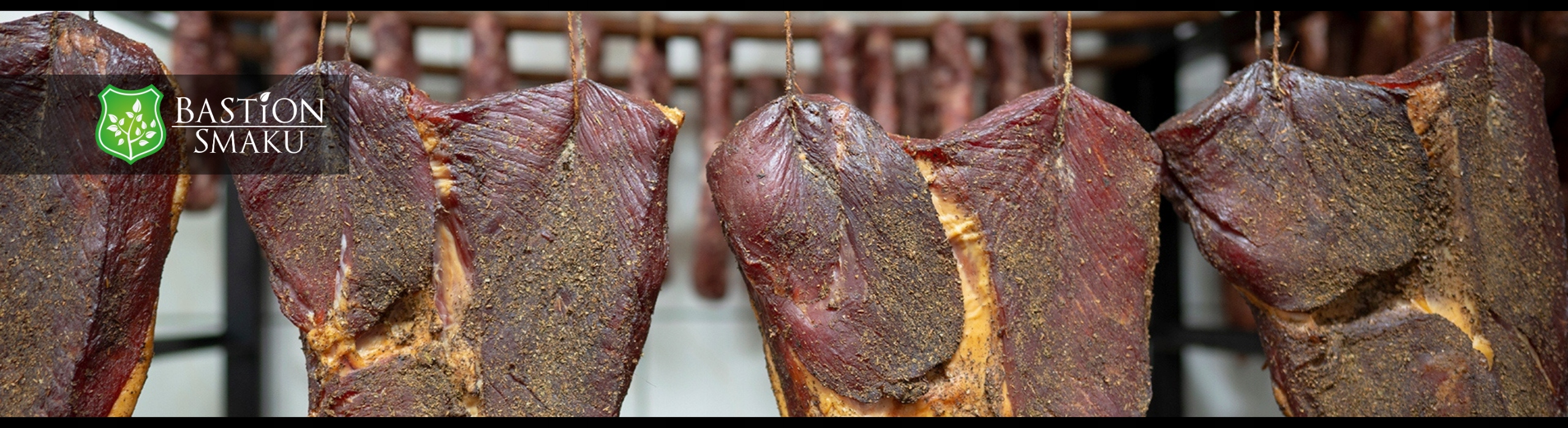 , що мацерував травами, копченою з холодним димом, що дозріває свинячу шинку. Процес тривалого дозрівання у поєднанні з натуральними сумішами трав надають йому витончений смак, який ідеально гармонізується з вишуканими спиртами, особливо з сухим вином . Любителі синього сиру та екзотичних фруктів визнають це сутністю ароматизованих комбінацій. Експресивний характер нашої шинки дає пишність кулінарним заходам, і кожне свято з шинкою майстра Яцека перетворюється на справді майстер -фестиваль ароматів .
