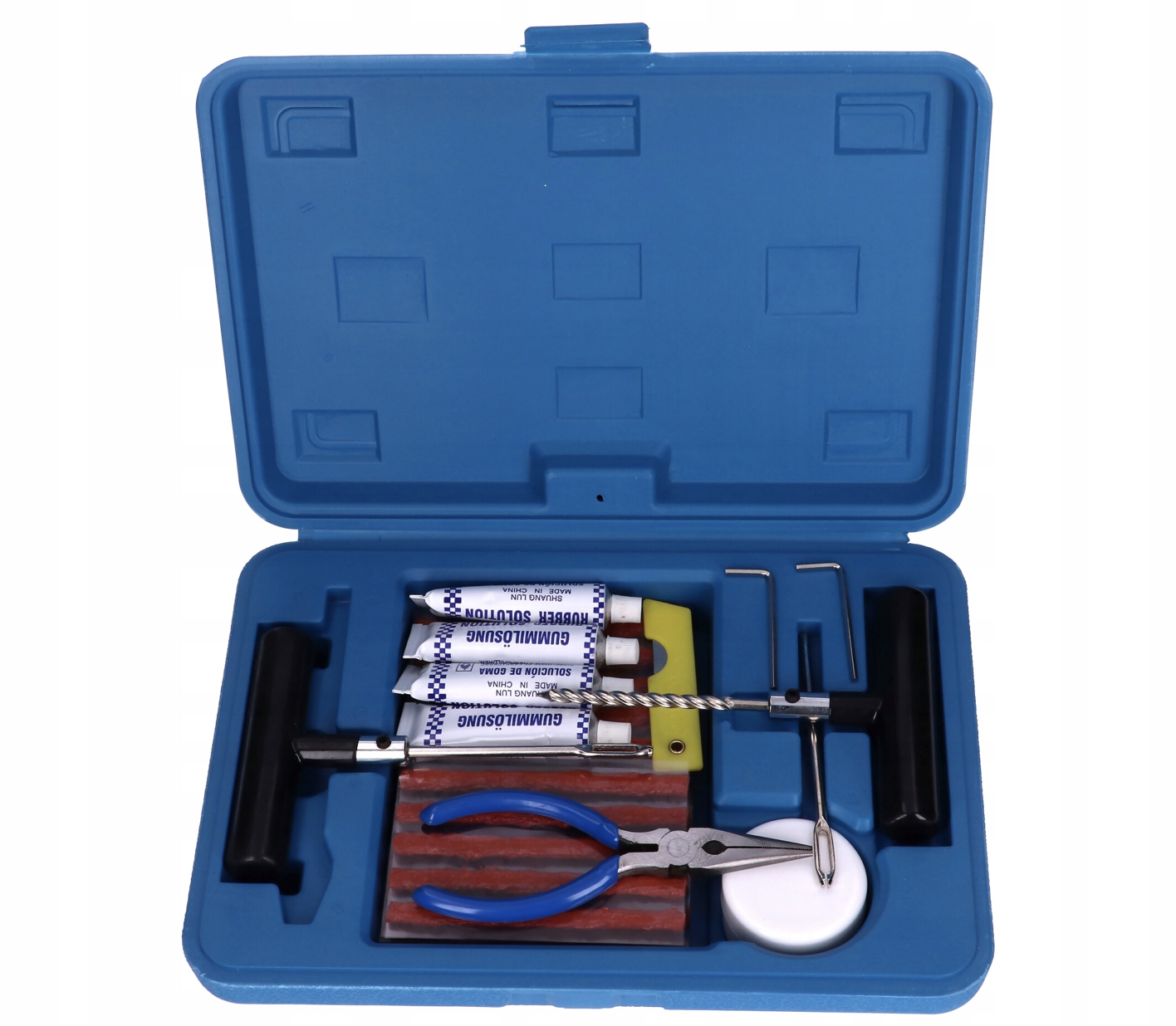 Такий набір має бути в кожному автомобілі. Проколоту шину ремонтують у зовні, не потрібно ремонтувати її в розбиранні.