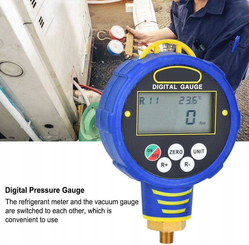 Вбудована база даних тиску холодоагенту 82 і відповідної температури. Лічильник холодоагенту та вакуумметр перемикаються один на одного, що зручно у використанні. Він може виміряти тиск вакууму та вказати ступінь пилососа у відсотках. Підходить для WK6881H 6881L 6882 6884 З акумулятором швидкої низької напруги час автономної роботи становить 30 годин