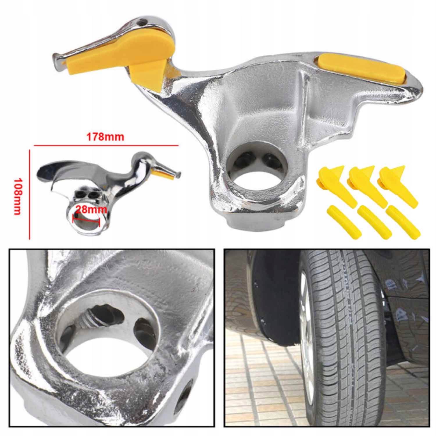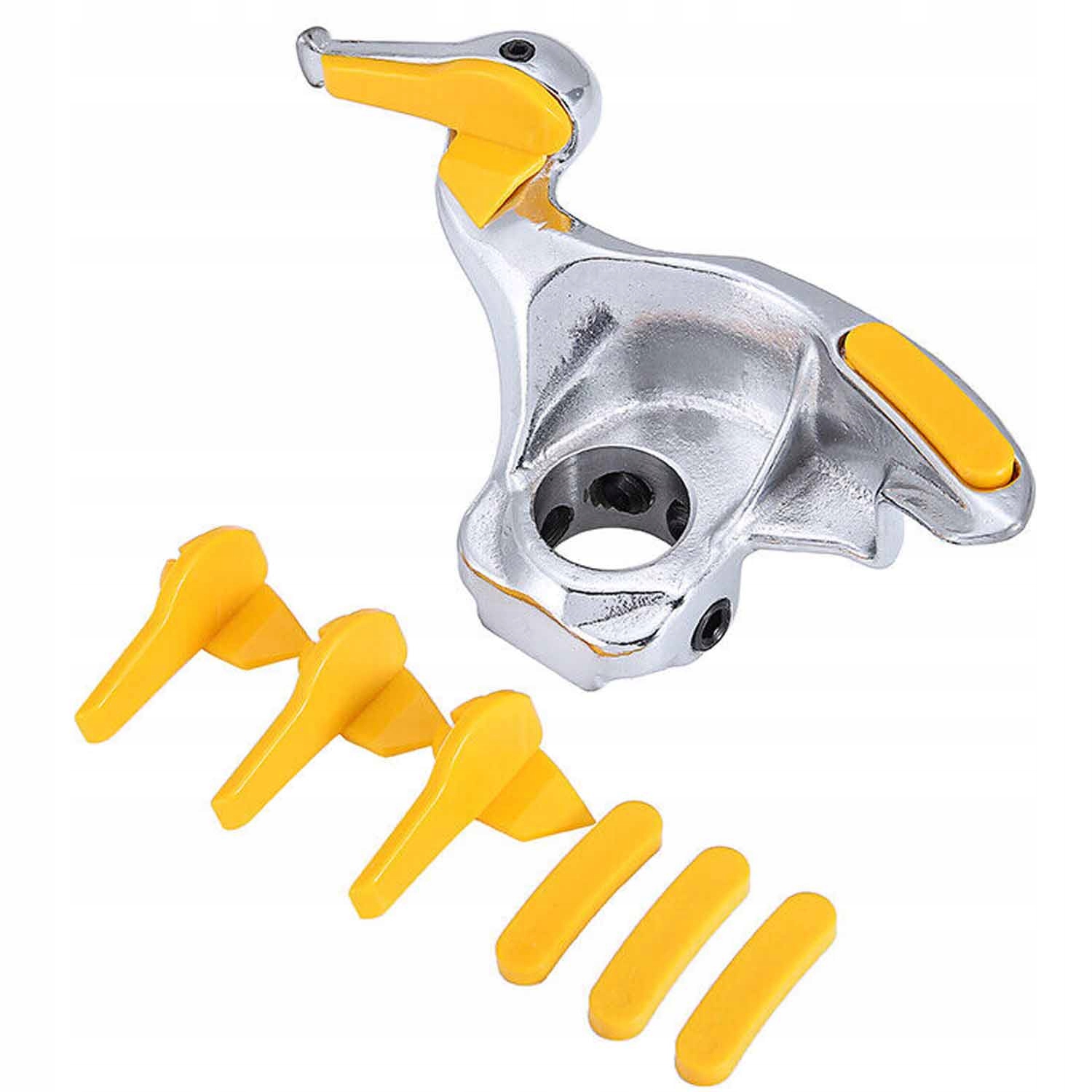 - 🚙Головка шиномонтажного пристрою має гладку поверхню, яка допомагає зменшити тертя завдяки плавному підйому шини, а вставки захищають обід шини від подряпин під час заміни шини.