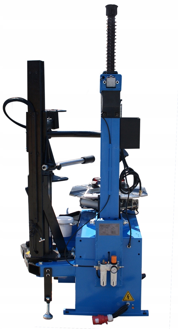 Представлена модель шиномонтажного станка характеризується пневматично керованим головним важелем нахилу, що замикається, що забезпечує швидку та безпечну заміну шин.