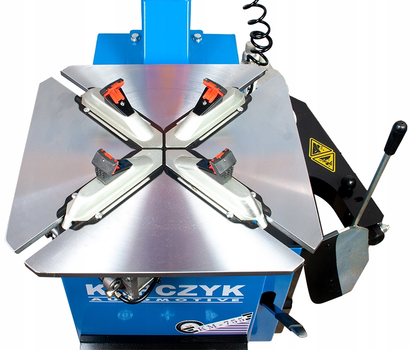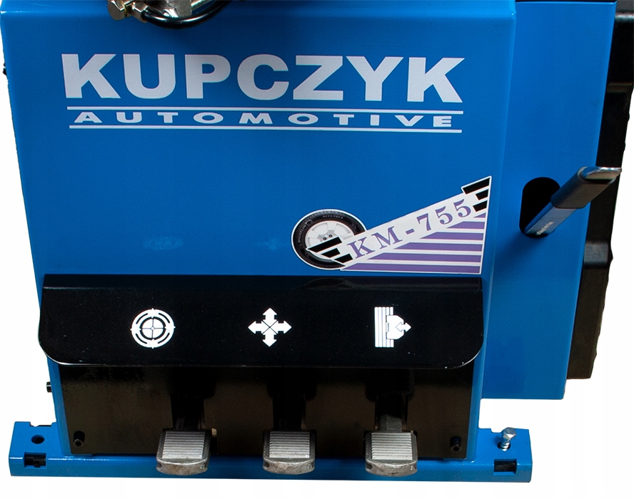 Шиномонтажний станок КМ-755 призначений для коліс діаметром до 22 дюймів (внутрішнє кріплення обода). Він має квадратний стіл з чотирма губками, керованими міцними та надійними приводами. Крім того, машина характеризується високою якістю механізмів управління як електричною, так і пневматичною установкою. Привід розриву борту, який використовується в KM-755, забезпечує зусилля 2500 кг, а його профільована форма значно полегшує зняття шини.