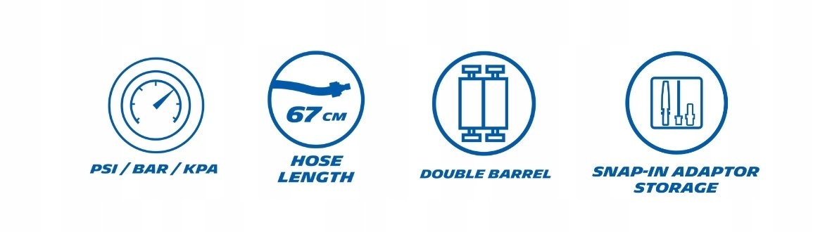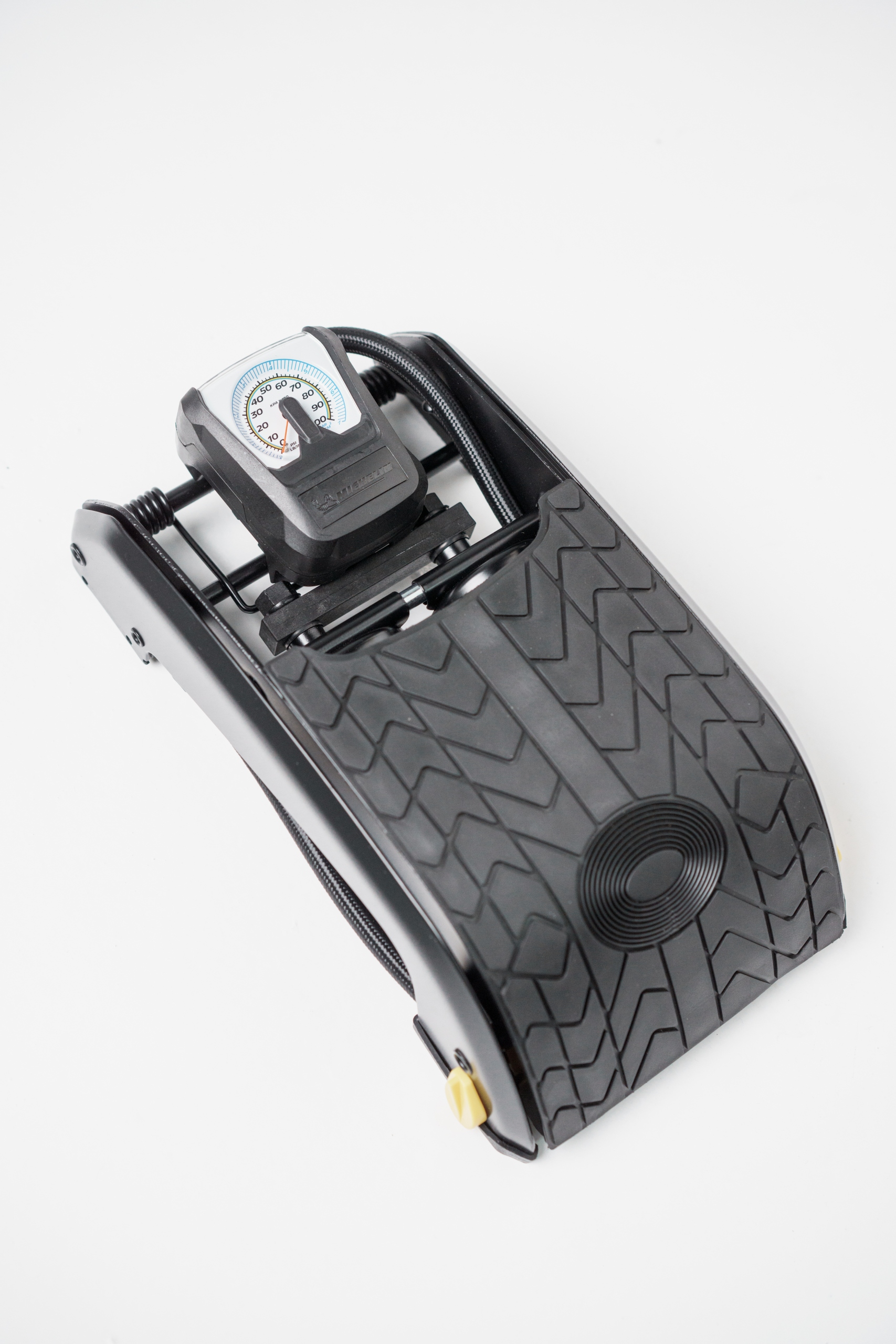 Ручний аналоговий двоствольний ножний насос MICHELIN доводить свою корисність у будь-яких умовах, завдяки потужності м’язів, він дозволяє швидко відновити запаси тиск в шинах до необхідного значення. Він має три додаткові наконечники - адаптери, тому він також підходить для домашнього використання як швидкий і ефективний насос для м'ячів, надувних іграшок і навіть понтонів.