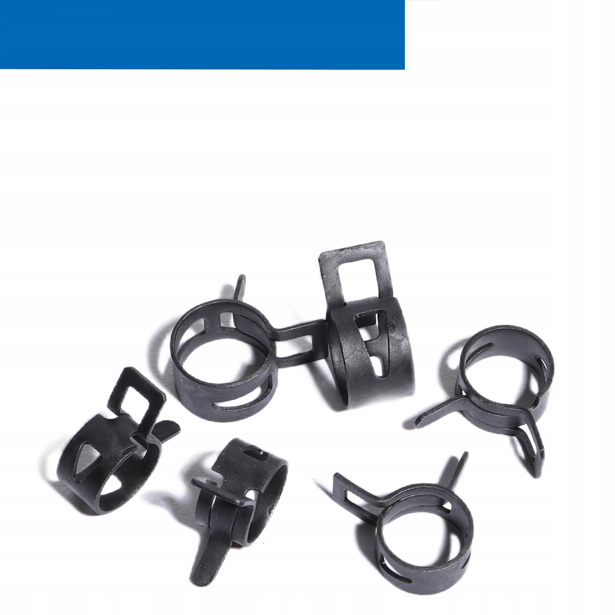Затискачі виготовлені з високоякісної пружинної сталі 65Mn, яка характеризується міцністю та стійкістю до корозії навіть у вологих умовах. Полірована поверхня запобігає пошкодженню стінок шланга під час монтажу, а конструкція гарантує тривале використання без деформації.