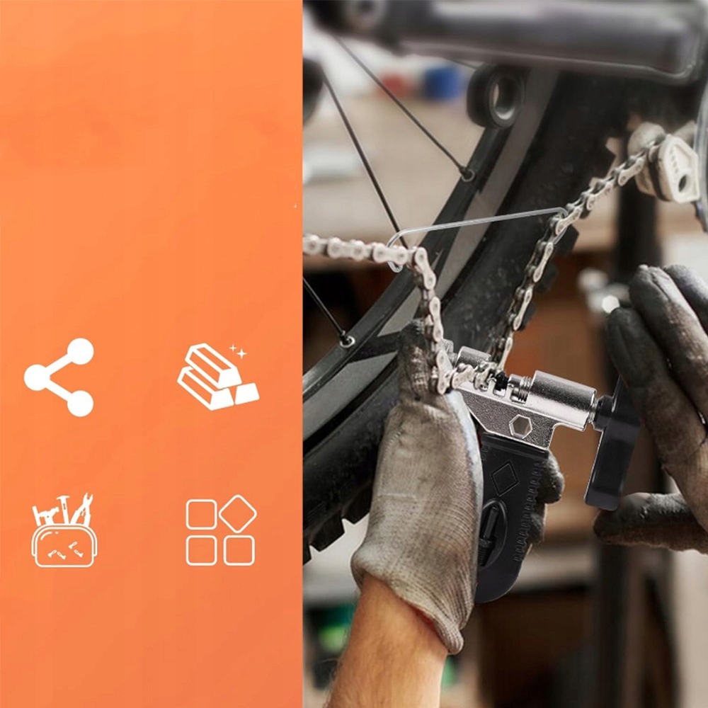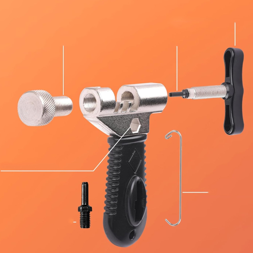 Ланцюговий різак розроблено з високою точністю, за допомогою якого можна швидко й точно розрізати або з’єднати ланцюг, а ви не потрібно хвилюватися, що ланцюг невідповідної довжини або нещільно з’єднаний, спіральна ручка подовжується до 86 мм, що економить енергію та полегшує її розрив. Значно підвищує ефективність і безпеку обслуговування велосипеда.