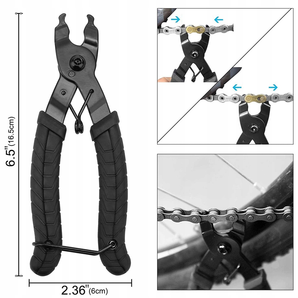 2 в 1 для відкривання та закривання ланок. Протиковзка гумова ручка, ергономічний дизайн для зручності та простоти використання. Підходить для ланцюгів перемикання передач 6, 7, 8, 9, 10, 11 і 12. Планка для замикання ланцюга має ручку-фіксатор, що робить її маленькою та легкою для зберігання в закритому стані.
