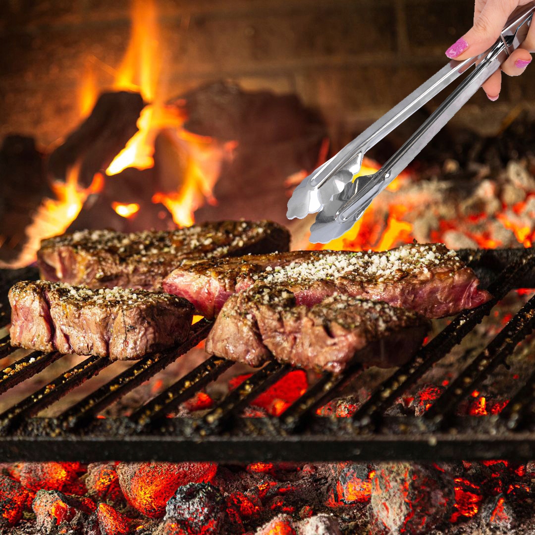 Сталеві кухонні щипці-гриль для обертання м'яса, подачі салатів