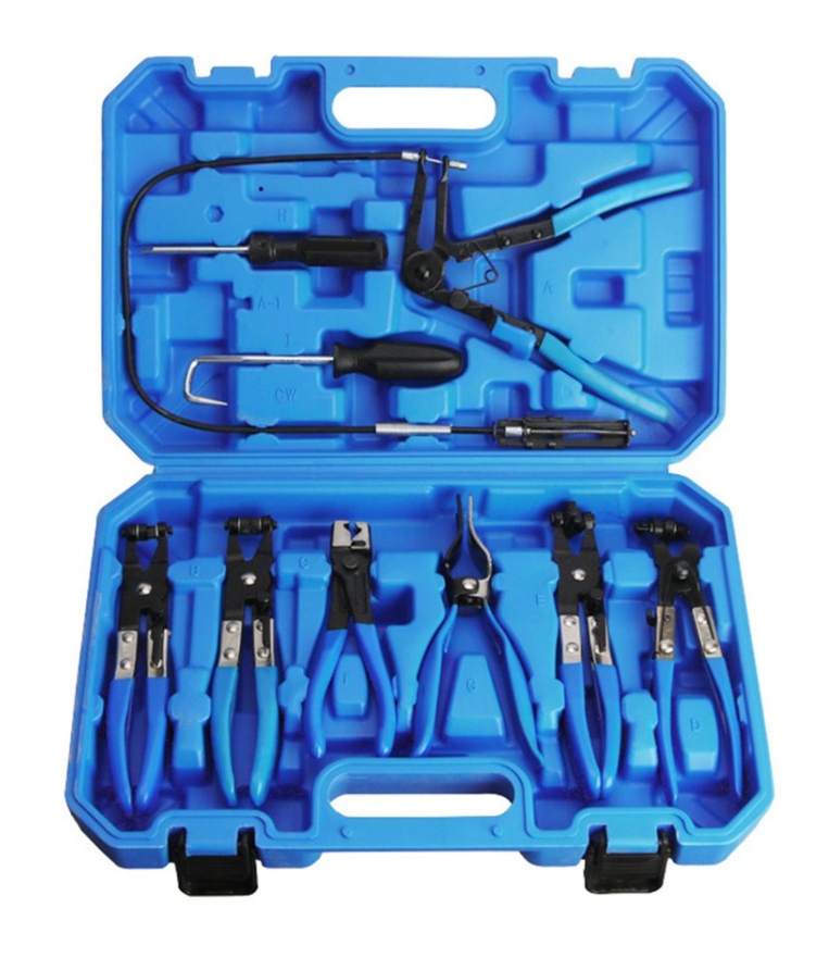 - Зігнуті щипці для вузьких шлангових хомутів: