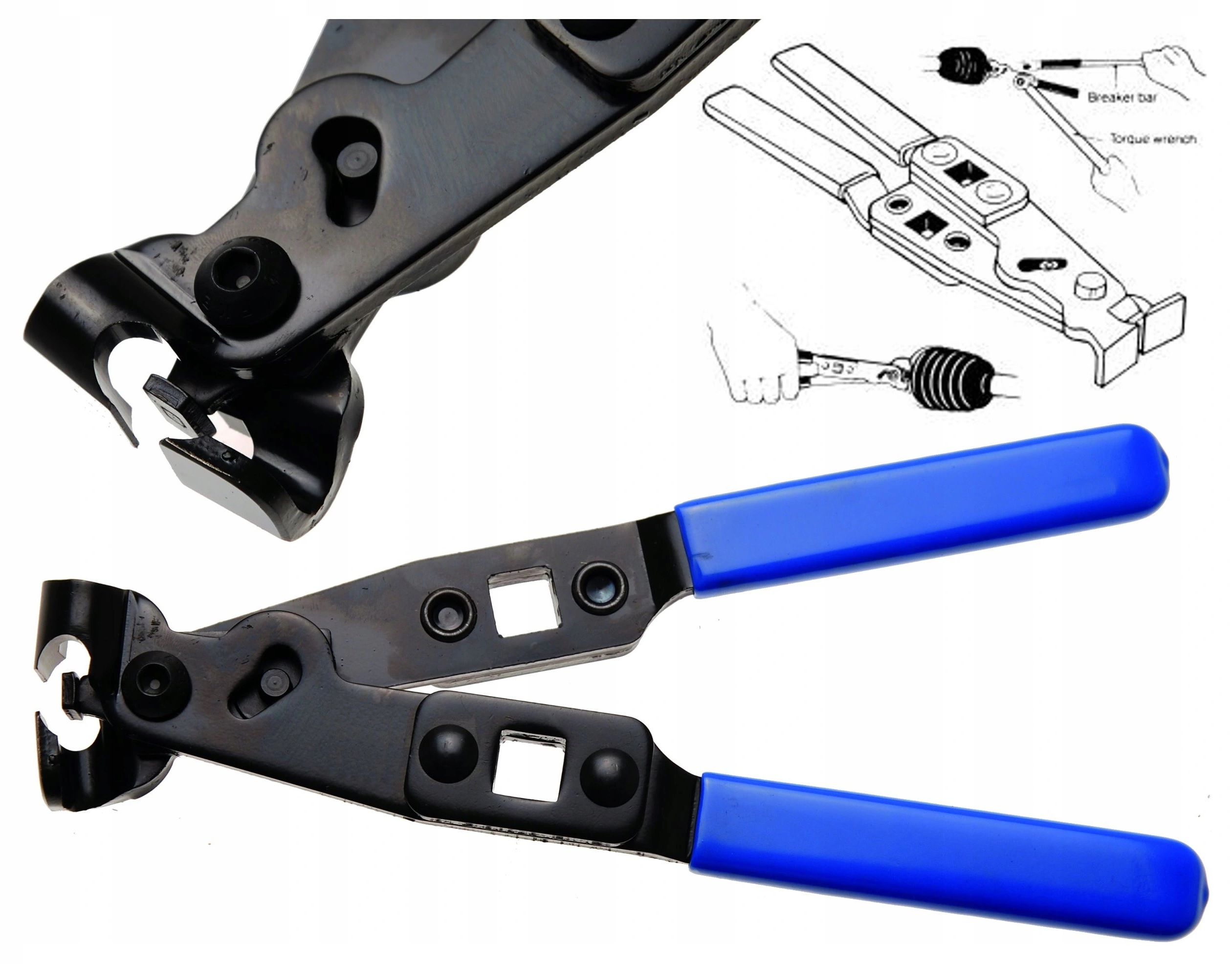 - Річки кліщів оснащені гнізда 1/2", які дозволяють витягнути плечі з ручками для збільшення сили натискання