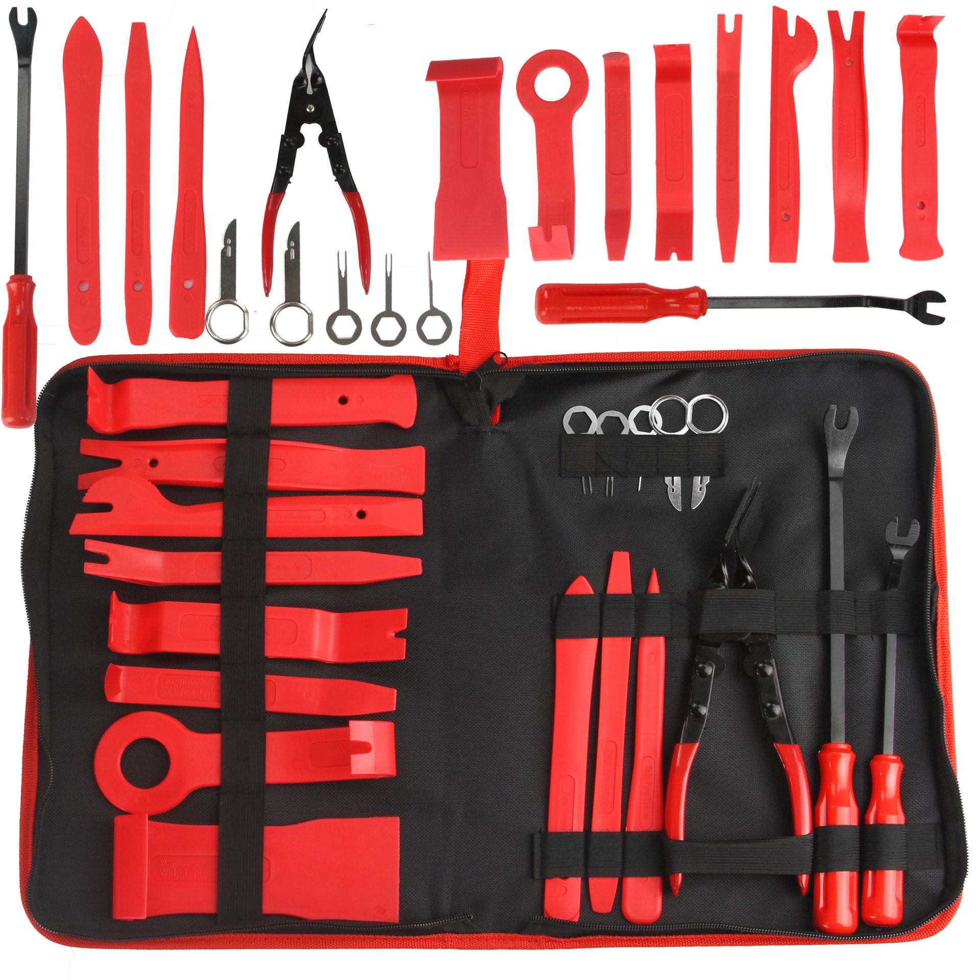 Професійний набір важелів для оббивки виготовлений із пластику, армованого скловолокном. Легко і точно демонтуйте оздоблювальні елементи, хомути, ущільнювальні хомути, вимикачі, дверні панелі тощо, не пошкоджуючи їх.