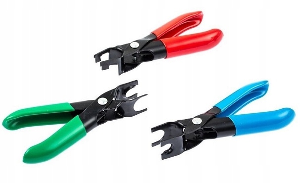- Для роз’ємів паливопроводу, які використовуються, серед іншого, в автомобілях Opel і Fiat, де сегмент від’єднання доступний збоку, використовуйте червоні плоскогубці.