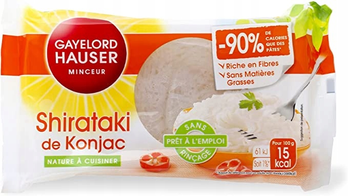 Konjac Shirataki — чудова альтернатива класичній пасті, яка містить лише 15 калорій на порцію, що на 85% менше, ніж макарони. Їх можна їсти в будь-яких соусах і замінити пасту разом з м'ясом або овочами. Багаті клітковиною, нежирні та з меншим вмістом вуглеводів порівняно з макаронними виробами, вони дозволяють насолоджуватися ними, не відчуваючи почуття провини! Конжак – традиційний і натуральний інгредієнт з Азії, волокна якого розбухають у контакті з водою в шлунку, створюючи ефект насичення.