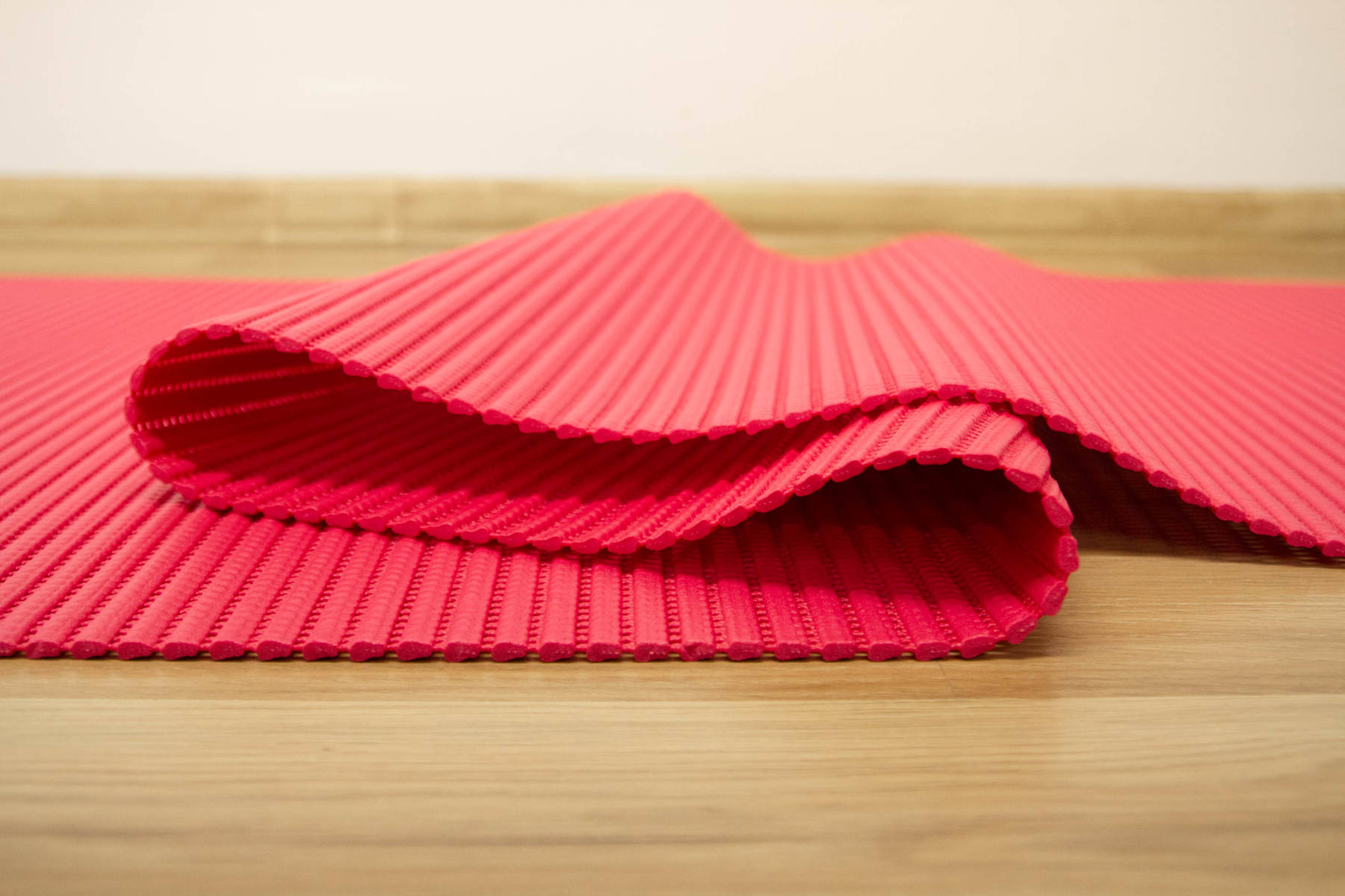 Протиковзкий килимок softy-tex широко використовується: у ванній і біля басейну. Представлена модель червоного відтінку.