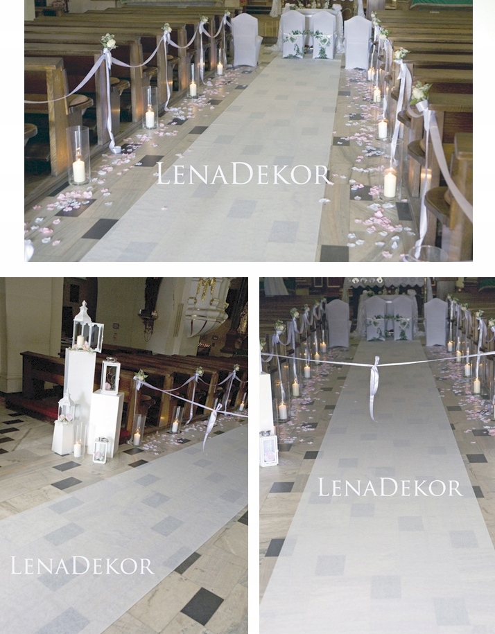 Улюблений продукт професійних прикрас. Незамінний у кожному флориста. Ідеально підходить для прикраси церков, розташування цивільних весіль, декору весільних залів або святкування на свіжому повітрі. Ідеально підходить як захист традиційного білого килима.