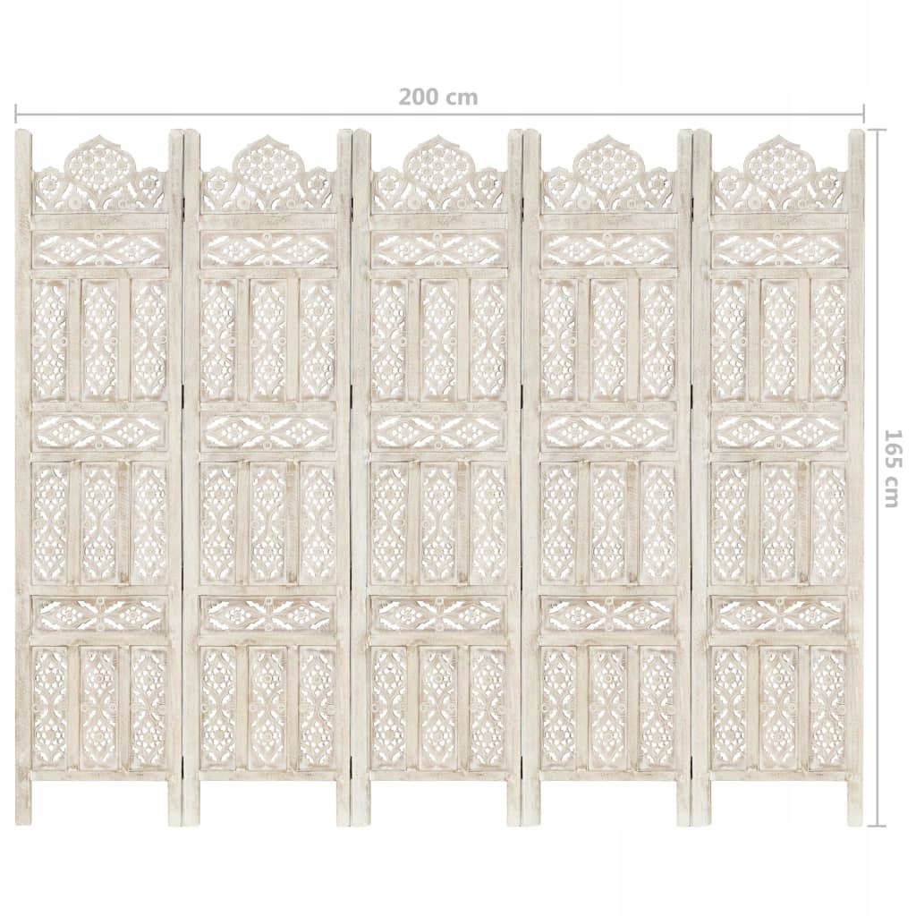 ШИРМА 5-ПАНЕЛЬНА РІЗЬБЛЕНА БІЛА 200X165СМ ДЕРЕВО МАНГО