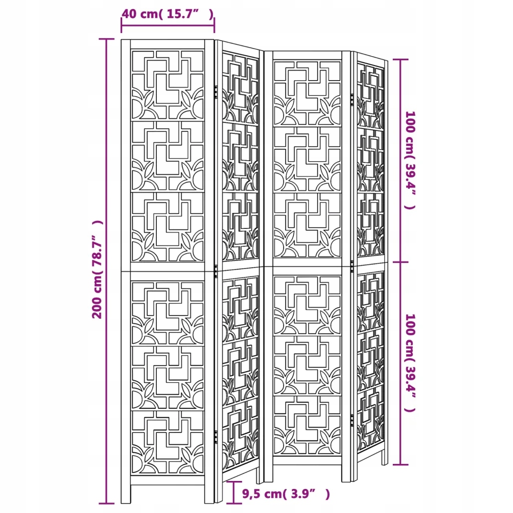 - Розміри кожної панелі/стулки: 40 x 200 см (Ш x В)