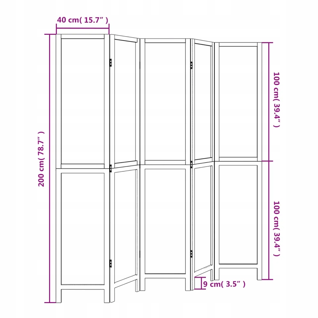 Ширма для кімнат, 5 панелей, темно-коричнева, масив павловнії