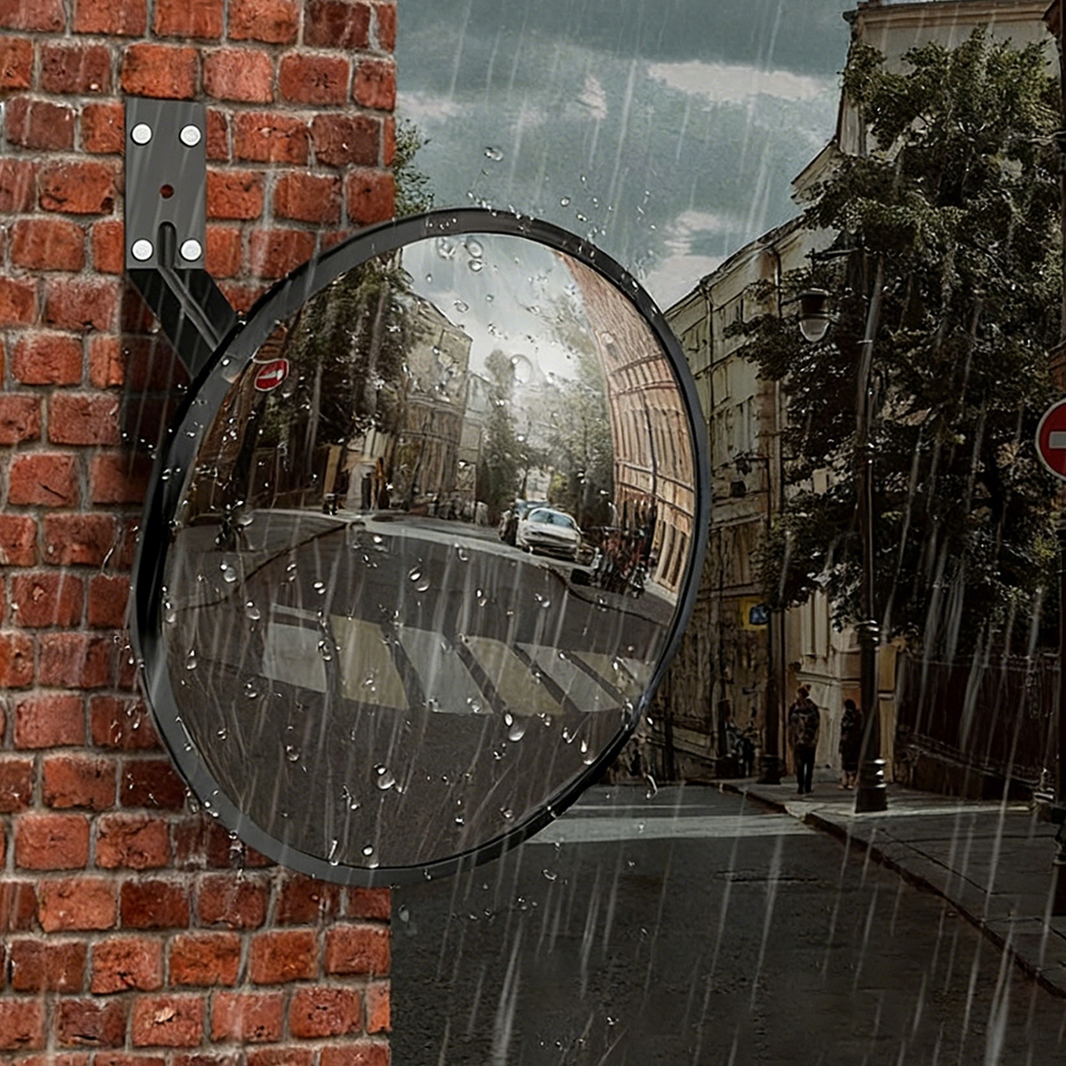 Задня частина зовнішнього дзеркала оснащена поворотним кульковим підшипником, який дозволяє встановлювати потрібний кут огляду. Завдяки міцному металевому настінному кріпленню це дорожнє дзеркало витримує навіть найсильніший вітер - воно не прогинається і не втрачає встановлене положення кута огляду.