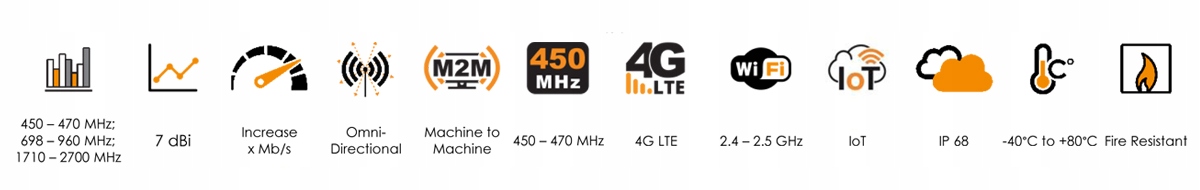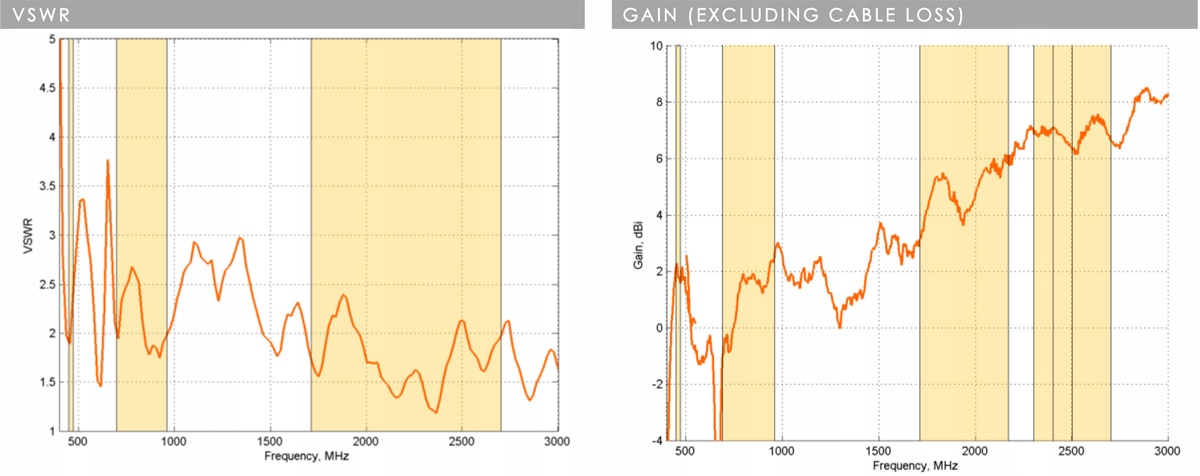 7 dbi - це пікове арматура у всіх смугах від 450 до 2700 МГц. (Прибуток на 450-470 МГц: 2 dbi; прибуток на 698-960 МГц: 2,7 dbi; прибуток на 1710-2700 МГц: 7 dbi)