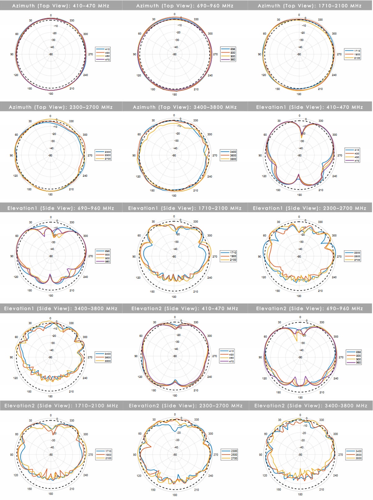 6,2 дБі — це пікове посилення для всіх діапазонів від 410 до 3800 МГц,