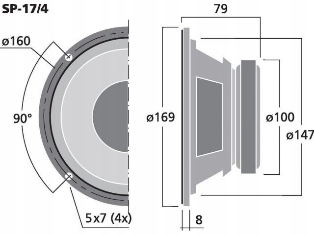 ШИРОКОСМУГОВИЙ ДИНАМІК MONACOR SP-17/4 169мм 4ОМ