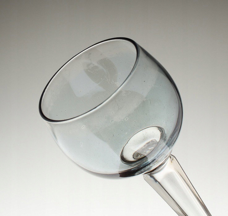 Без тріщин, відколів або осаду всередині чашок. Склянки мають нерівномірну втрату дзеркального покриття на глибині приблизно 5 мм нижче верхнього краю чашок, а деякі також і внизу. У світлі спалаху блискуче дзеркальне світіння виглядає сіруватим. У скляній масі на ніжках видно бульбашки повітря.