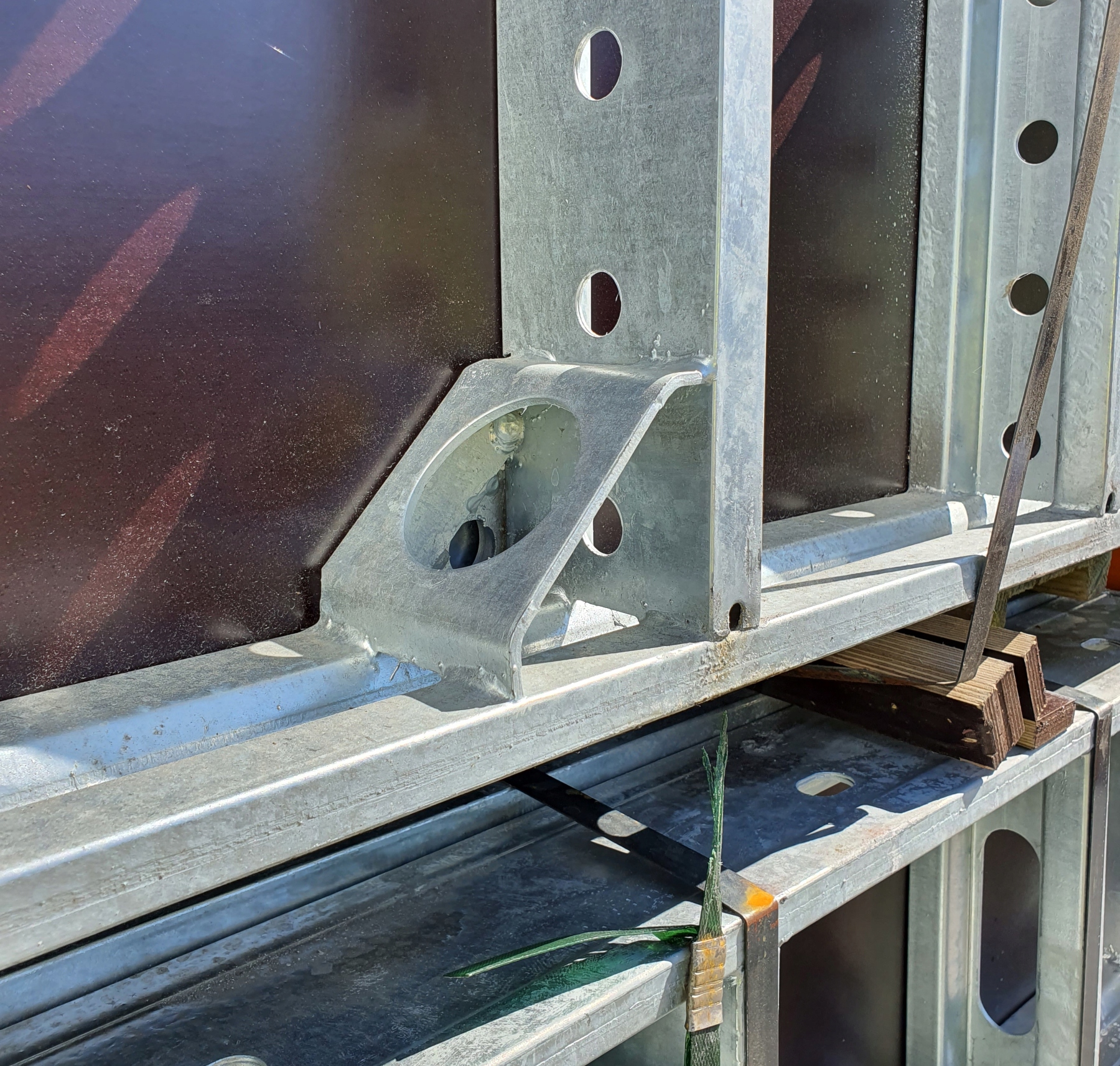 Плити Bauframe мають інноваційне рішення у вигляді сталевих профілів з параболічними отворами для наскрізної стяжки, які захищають обшивку від пошкоджень під час монтажу та демонтажу опалубки . Це значно збільшує довговічність покриття та збільшує час між його замінами.
