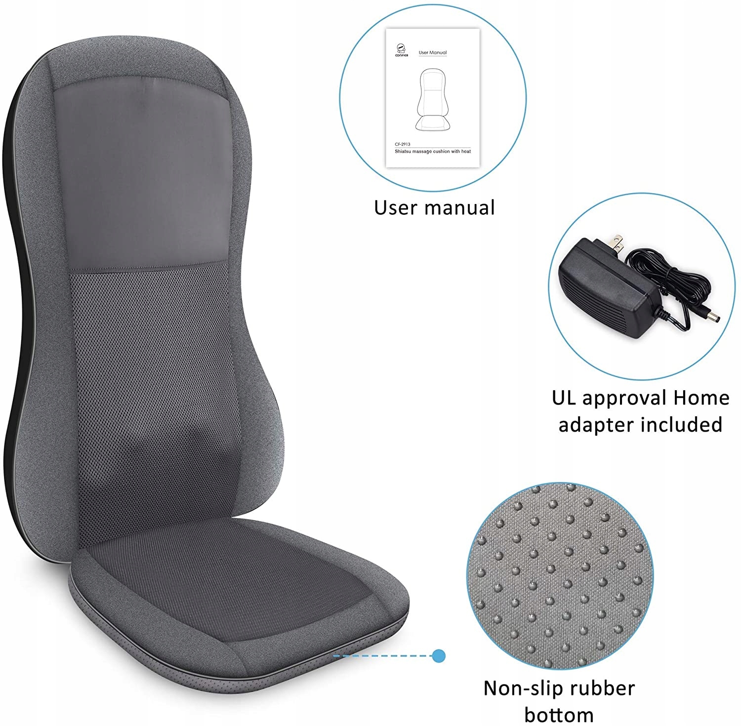 Shiatsu Massager, MASAGE MASAGE COMFIER вбудований в інноваційний механізм масажу, який забезпечує унікальні 2D/3D стилі для глибокого масажу тканин для полегшення жорсткості та напруги. Дві налаштування інтенсивності шиїту для задоволення ваших найкращих потреб.