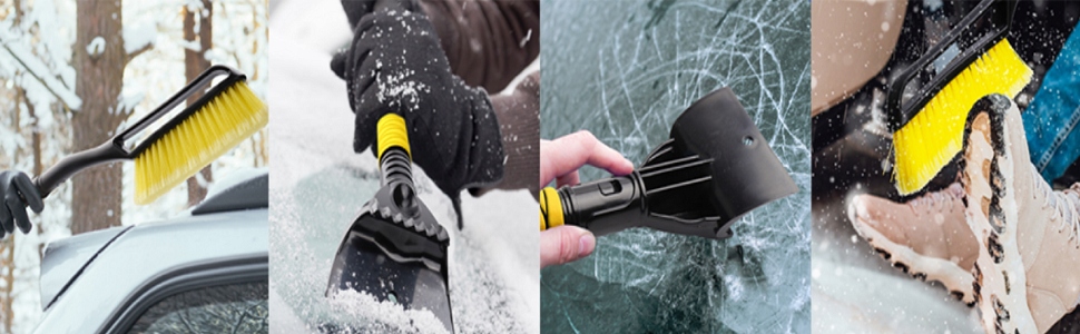 【Висока якість】 Автомобільний скребок виготовлений з морозостійких і міцних матеріалів, які ефективно видаляють лід і замерзлий сніг, не дряпаючи лобове скло.