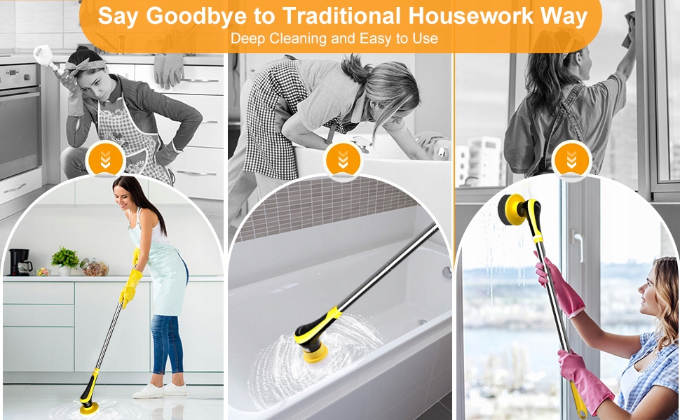 Збережіть свою спину та коліна: обертовий скруббер vrillo позбавив традиційного ручного прибирання та догляду за людьми похилого віку, артритами та людьми, які втомилися від прибирання. Оснащений фіксатором, ви можете швидко змінювати довжину обертового очищувача від 22 до 100 см, що дозволяє очищати важкодоступні місця, не нахиляючись і не стоячи на колінах.