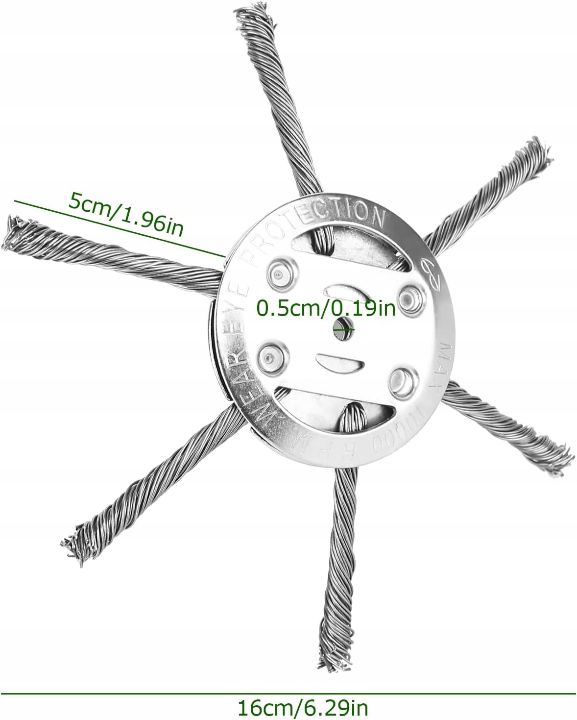 Матеріал: сталевий дріт. У набір входить 1 щітка для трави. Розміри виробу: 16 х 16 х 12,7 см; Вага: 120 г. Діаметр дроту: 15 см / 6 дюймів. Ширина зрізу: 15 см. Призначений для дорослих. Зберігати в недоступному для дітей місці. 🛠️🖐️