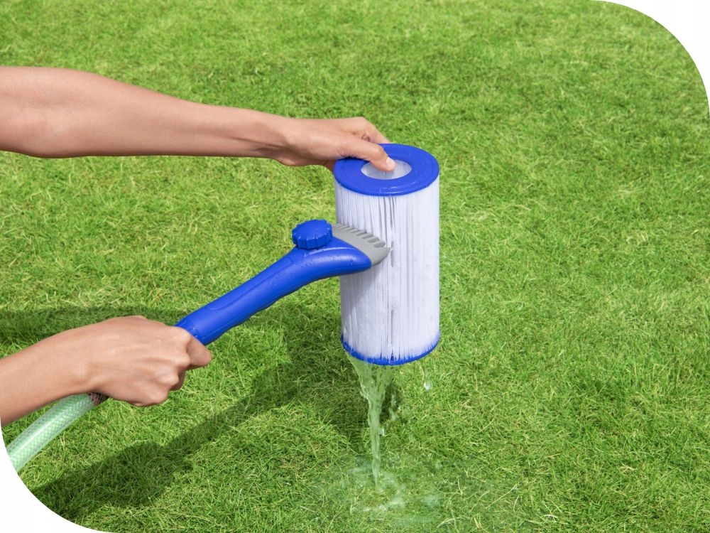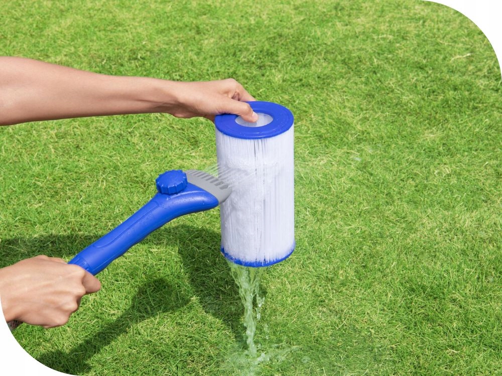 Лінія аксесуарів Flowclear™ пропонує низку основних продуктів для догляду за басейном. Ви можете знайти найбільш підходящий продукт відповідно до ваших потреб. Щітка розроблена так, щоб відповідати згинам фільтрувального паперу. Він легко очистить важкодоступні місця. У набір входить швидкий з’єднувач, який дозволяє легко під’єднати садовий шланг, завдяки чому потік води видаляє з фільтра більше забруднень за менший час, ніж сам садовий шланг.