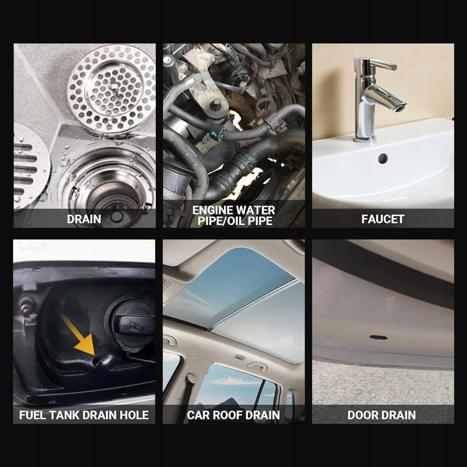 5. Широке застосування: ця гнучка дренажна щітка ідеально підходить для автомобільних люків, автоматичних склоочисників, дренажів паливного баку, стоків дверей автомобіля, дренажних труб, а також для чищення дренажу холодильника, чищення шлангової труби або скляної трубки, очищення частин водяного насоса, очищення системи фільтрів тощо.