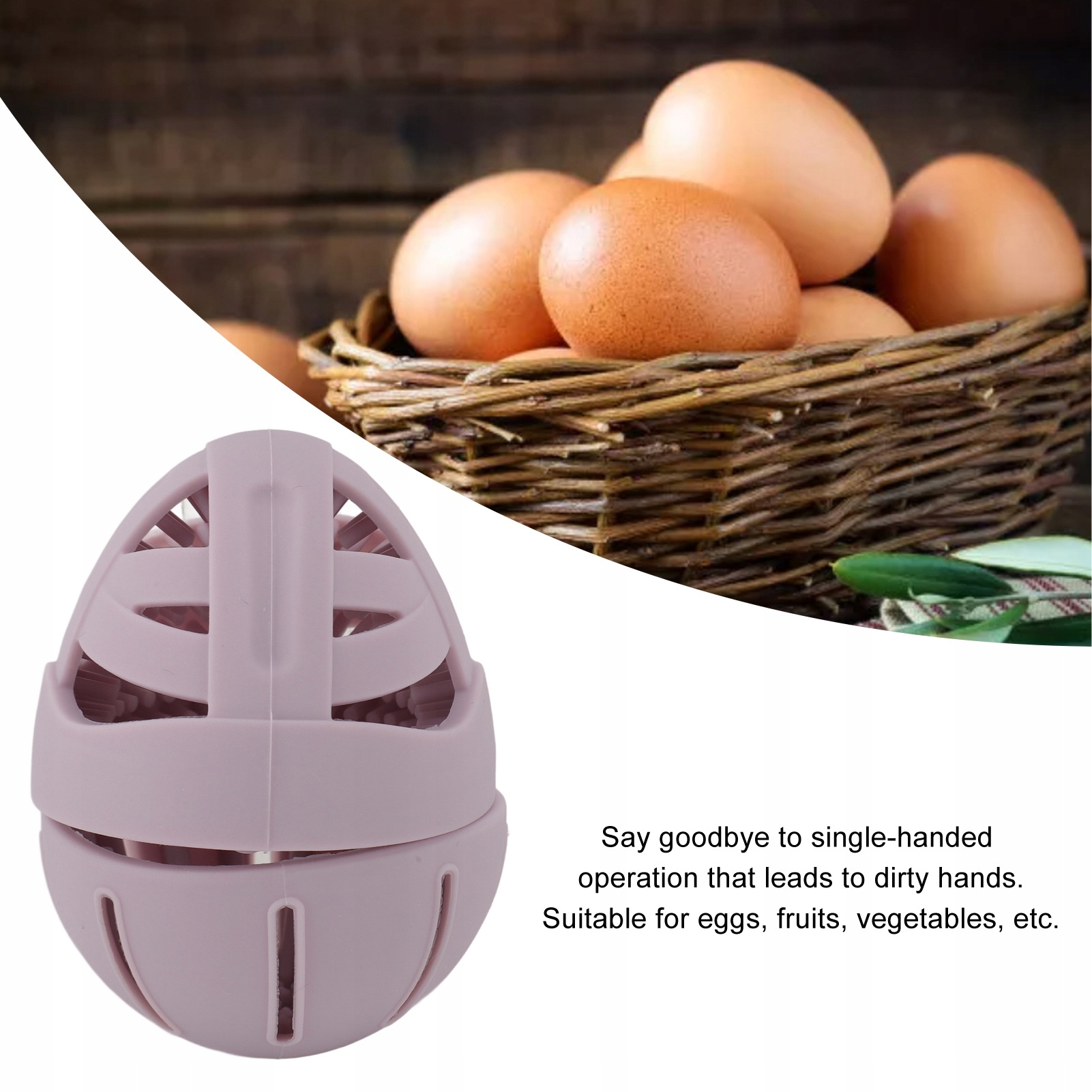 1. Ефективне очищення: силіконова щіточка для чищення яєць забезпечує швидке й ефективне рішення для видалення звичайних плям, залишків і забруднень з яєць, фруктів і овочів, що робить очищення легким.