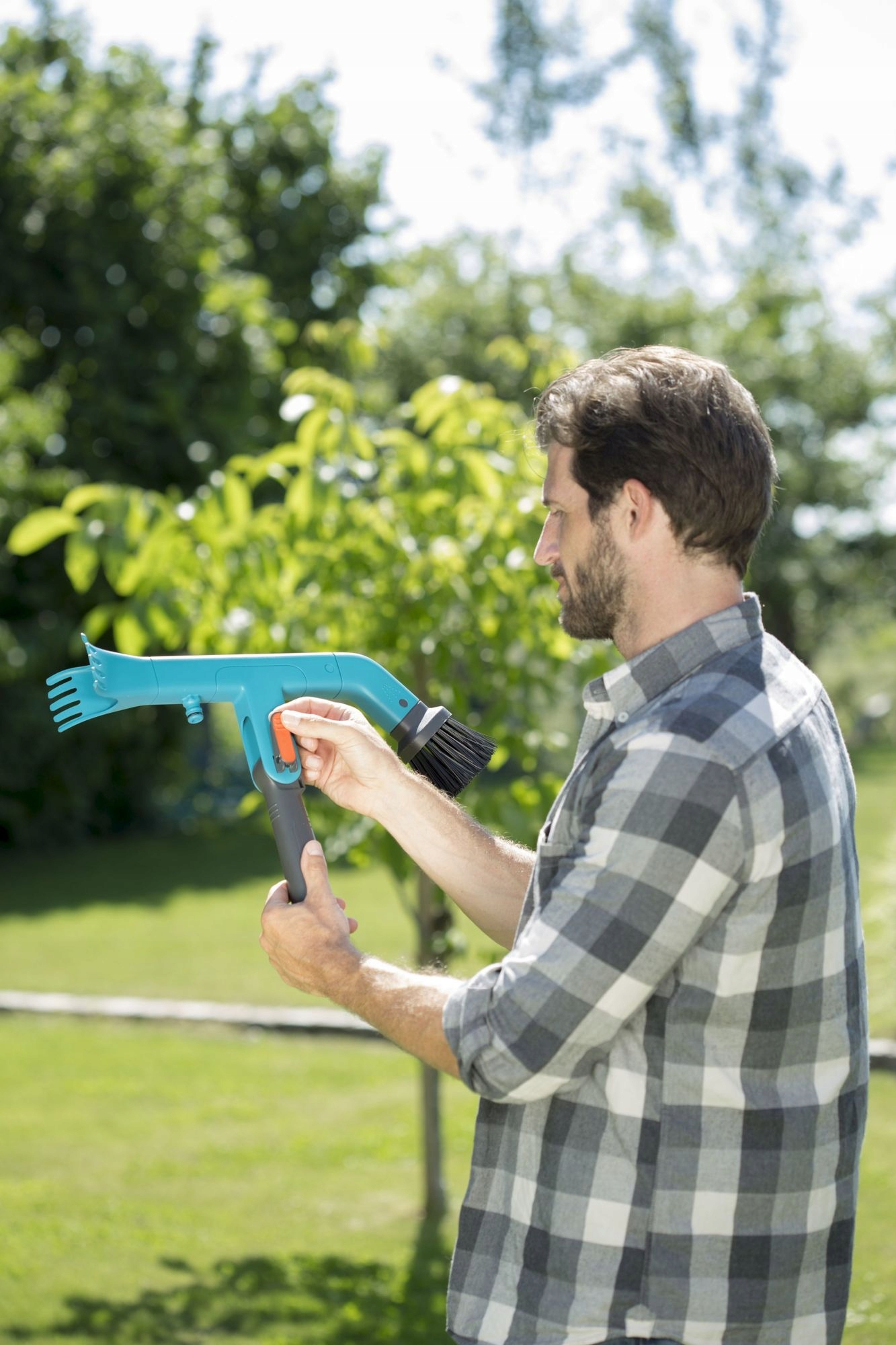 Розташування жолобів на даху точно не полегшує та не заохочує їх утримувати чистий. З очисним пристроєм Combisystem ця проблема зникає! Інструмент, про який йде мова, сумісний з усіма ручками (включаючи телескопічні) системи Gardena Combisystem, що дозволяє зручно очищати будь-який жолоб від землі, не піднімаючись по драбині. Якщо у вас немає ручки, то практична ручка приладу і налаштування робочого кута за допомогою застібки значно полегшать прибирання.