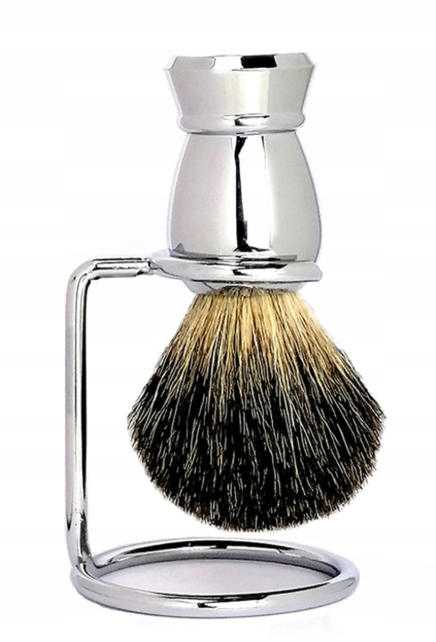 Щітка для гоління борсукової шерсті з металевою ручкою та металевою підставкою