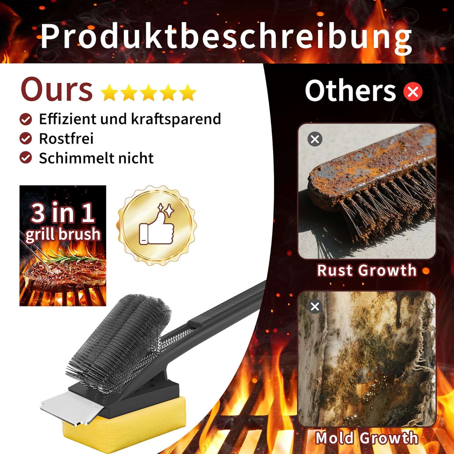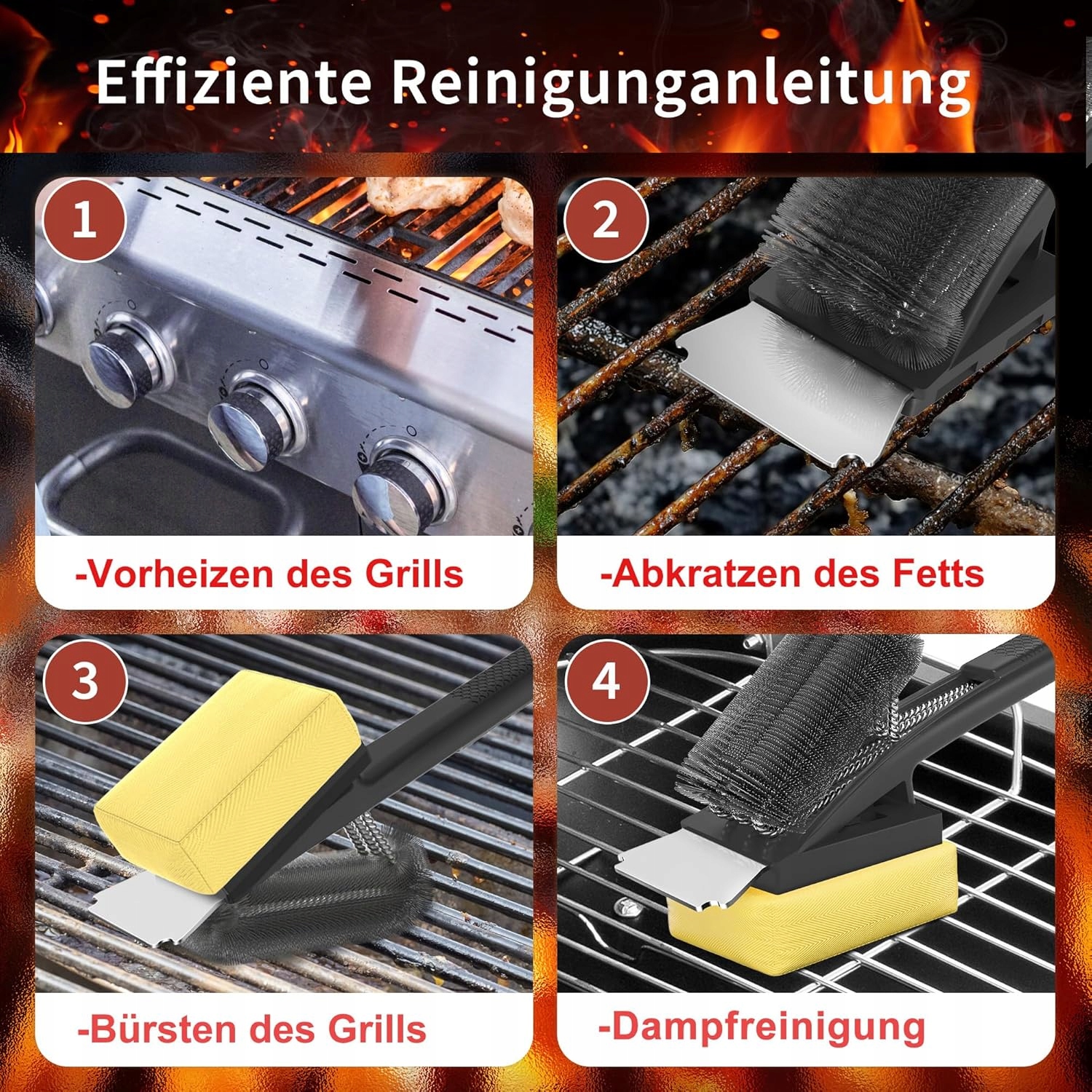 Відкрийте для себе абсолютно нове покоління щіток для чищення решіток! Ця інноваційна щітка поєднує сталеву щетину, стійку до високих температур губчасту головку та технологію очищення парою для забезпечення максимальної ефективності та комфорту. Ідеально підходить як для домашніх гриль-майстрів, так і для професійних кухарів.