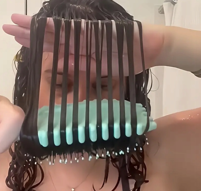 ✅ Завдяки нейлоновим кулькам на кінцях і «зубцям» на верхньому краю щітки, він чудово працює як масажер для голови.