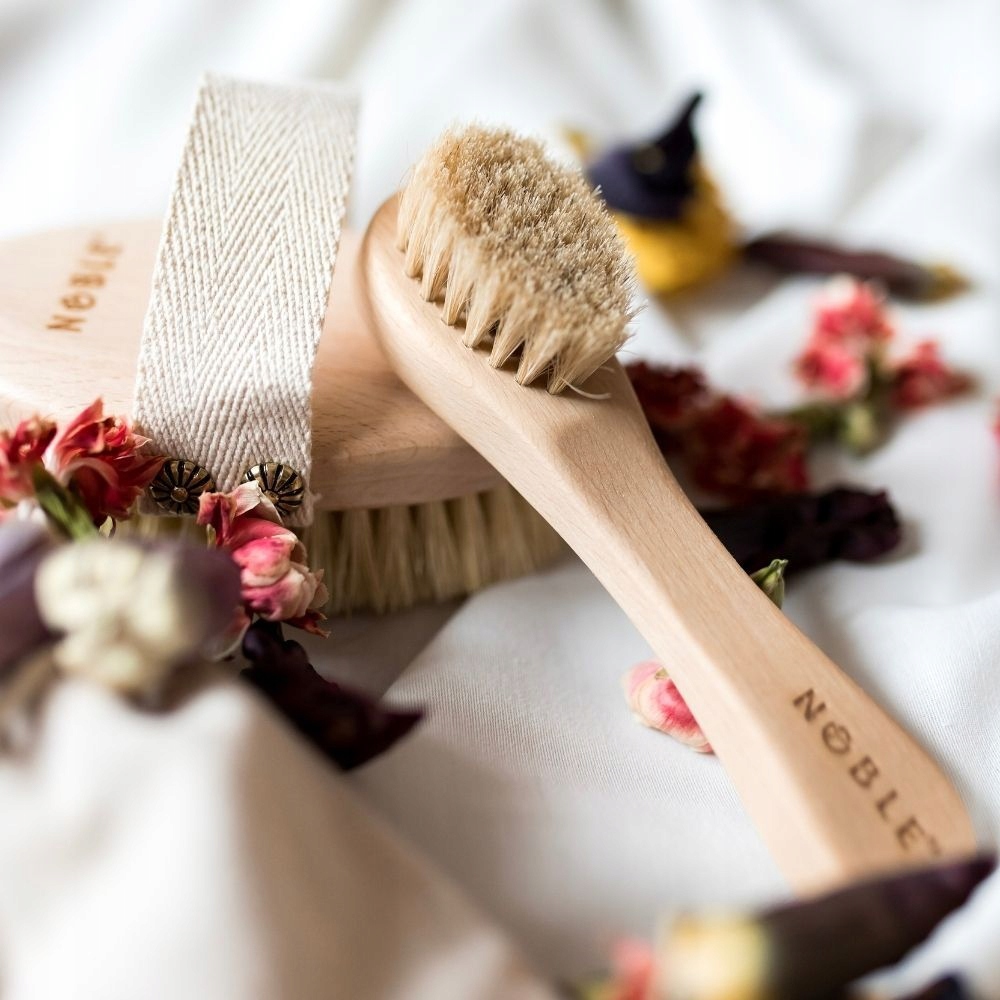 Щітка містить короткий посібник із чищення тіла та інструкції щодо сухого масажу NOBLE®.