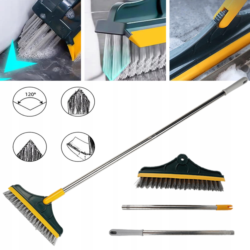 👍Гнучка щітка для чищення 120° з гумовим скребком | Для підлоги, стін, вікон і стелі | Міцна щетина | Регульована ручка💖