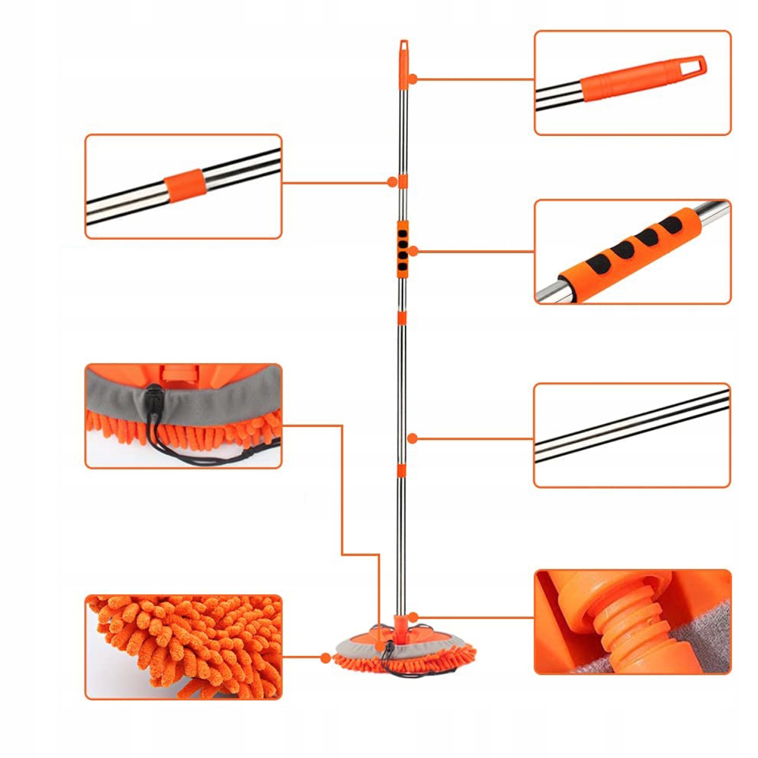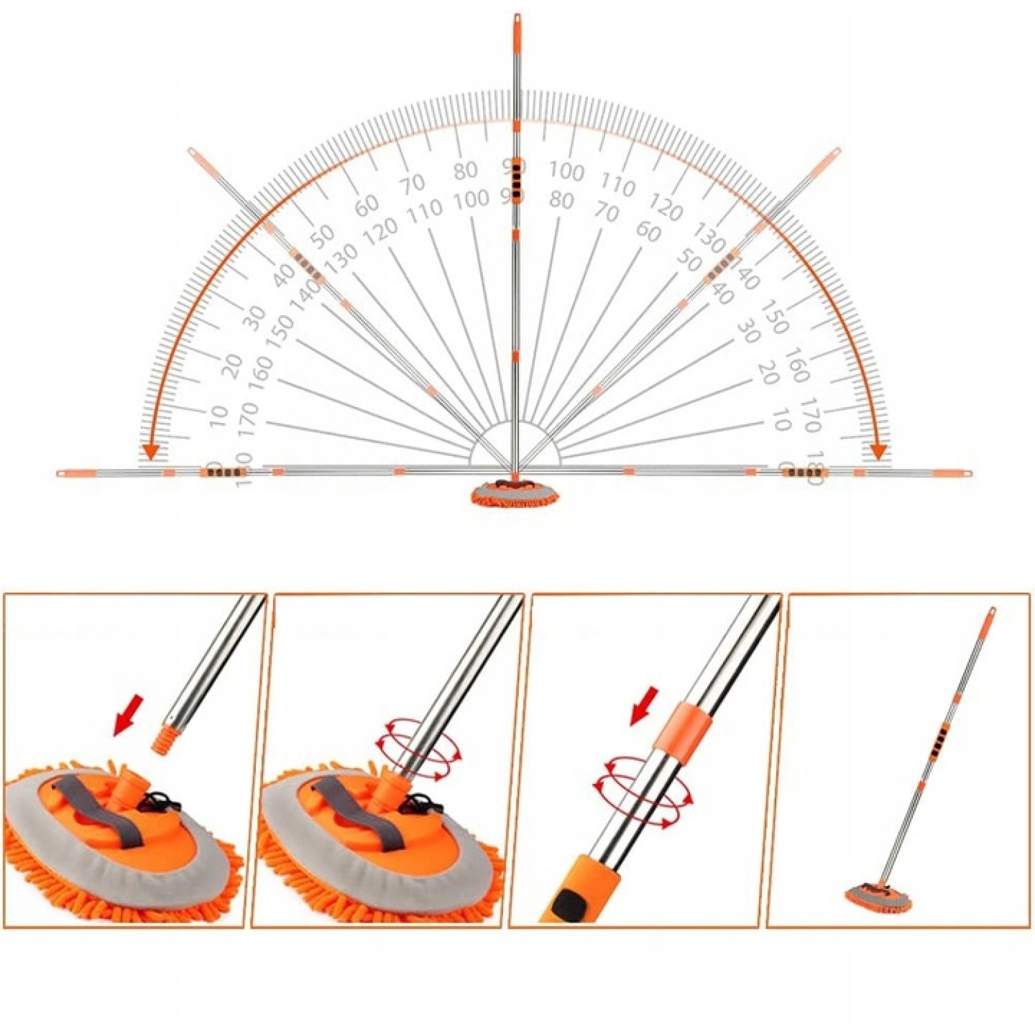 - Телескопічна конструкція та регульована на 180 градусів головка швабри дають у вас більше гнучкості під час миття автомобіля, тож ви можете легко виконати комплексне очищення.