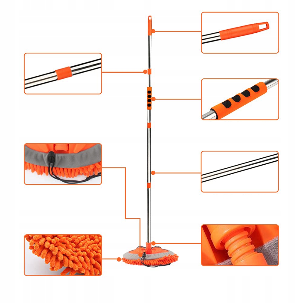 - Телескопічна конструкція та головка швабри, що регулюється на 180 градусів, дають вам більше можливостей під час миття автомобіля, тож ви можете легко ретельно очистити. Ця ідеальна швабра для миття автомобіля може ефективно заощадити ваш час!