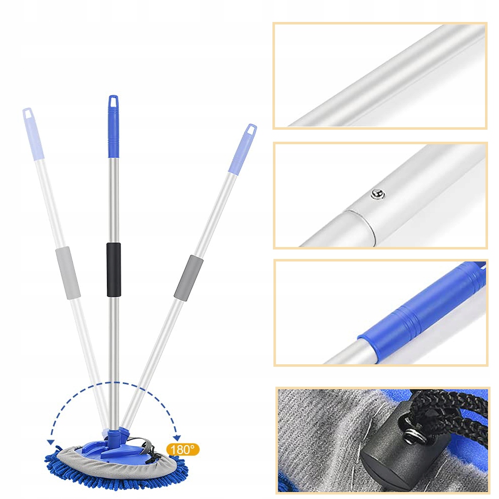 💦 【Довга ручка + ретельне очищення】 Наддовга щітка для миття автомобіля довжиною 160 см легко дістанеться до даху вашого автомобіля та інших вищі місця, тому вам потрібно так багато рухатися. Телескопічна конструкція та регульована на 180 градусів голівка швабри забезпечують більшу гнучкість під час миття автомобіля, тож ви можете легко завершити повне прибирання.