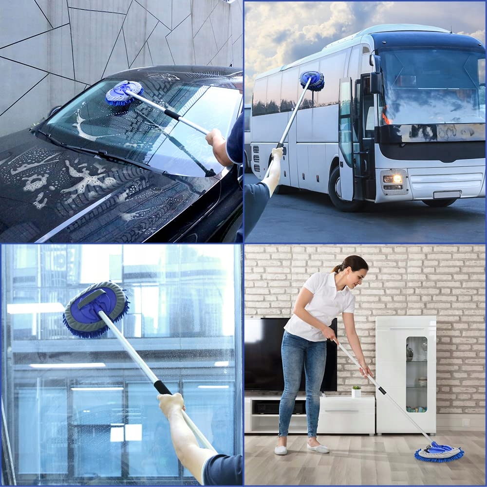 💦 【Широке застосування】 Багатофункціональна щітка для мийки ідеально підходить для миття , сушіння, вощення, пилососіння та полірування вашого автомобіля, фургона, позашляховика, транспортного засобу, вантажівки, автобуса, вантажівки чи каравану. Щітка для миття автомобіля з телескопічною ручкою також є ідеальним помічником для чищення скляних вікон, садових сараїв, човнів, меблів і будинків.