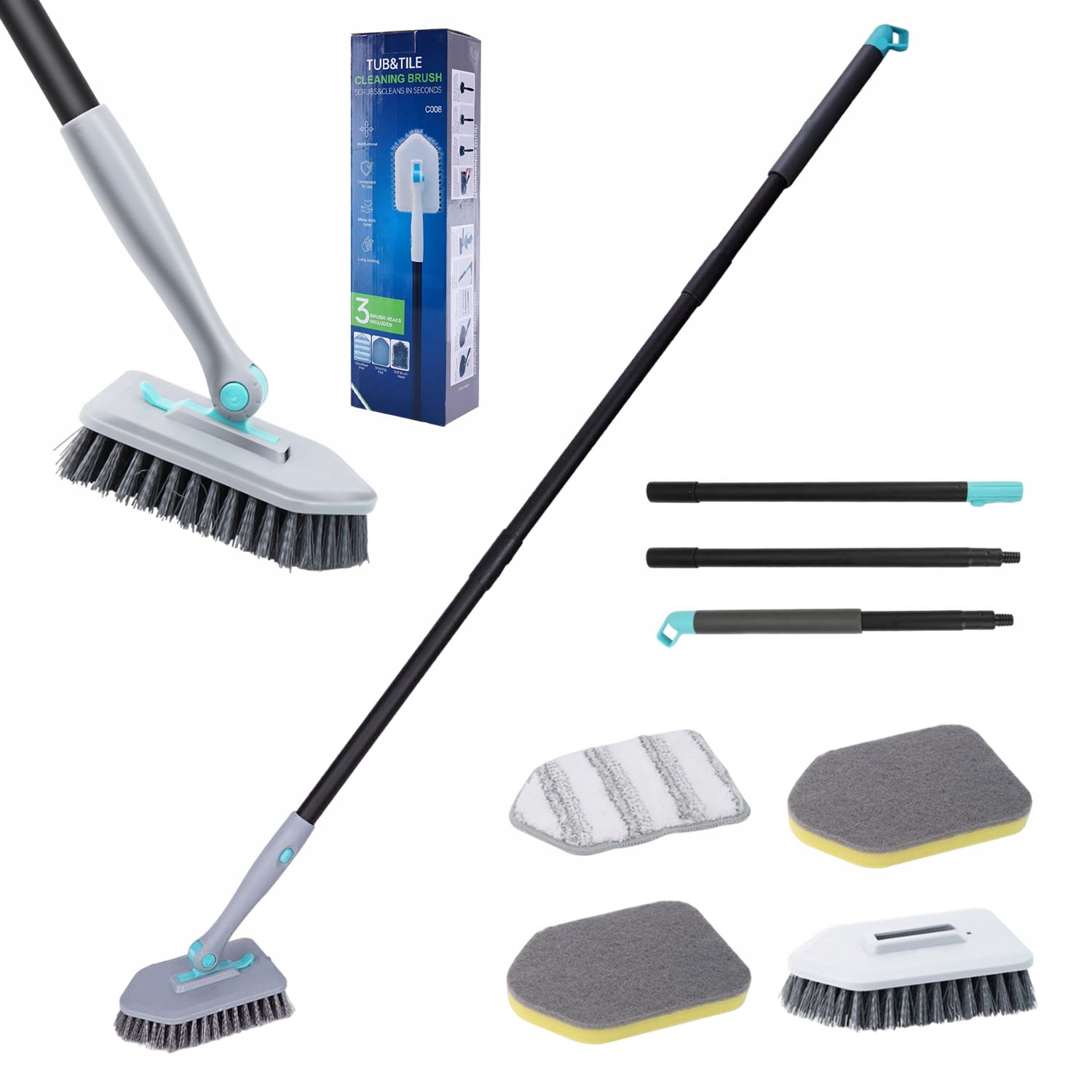 - Щітка для чищення 3-в-1 із довгою ручкою включає три різні високоякісні насадки для чищення, щітку з щетиною , губка та серветка з мікрофібри.